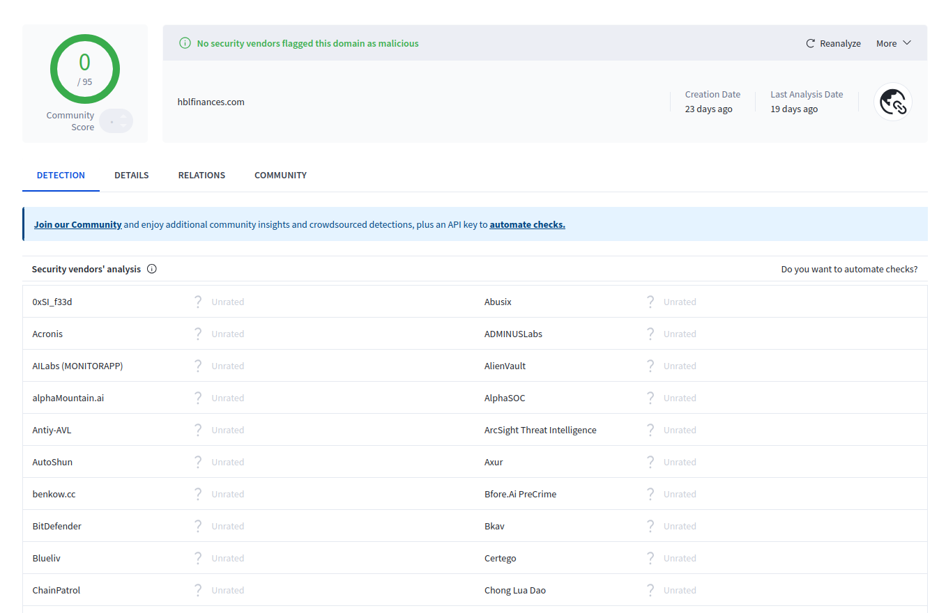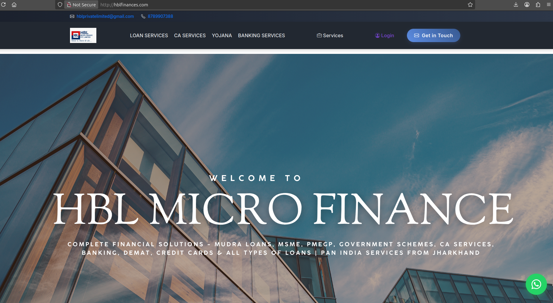 PhishReaper’s autonomous agentic AI hunter has uncovered a live, high-confidence phishing campaign, represented here by a site impersonating HBL Microfinance Bank at hblfinances[.]com. The site has been registered through GoDaddy and is being operated by a ghost entity in India. It went live on October 25, 2025 and, as of today, remains reachable and active. Visitors are funneled to an Indian WhatsApp contact via an on-site plugin and encouraged to engage with a deceptive Gmail address, hblprivatelimited@gmail.com. Alarmingly, broad reputation engines (including multi-engine aggregators) still mark the site as clean.