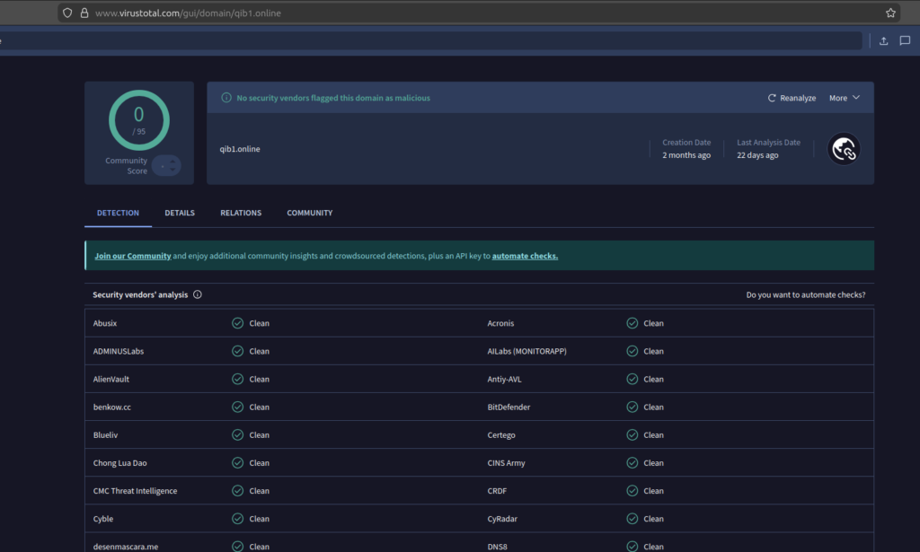 A Qatar Islamic Bank (QIB) impersonation domain (qib1[.]online) was registered on 4 October 2025 and detected by PhishReaper’s agentic AI on the same day. However, it was still active as of 25 December 2025; i.e., An 82โday operating window. In phishing, time is not a detail. Time is the multiplier.